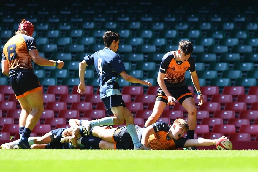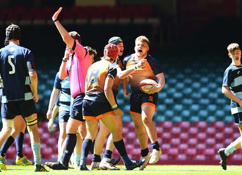 Realising that they needed to increase the pressure to come back into the match, Penweddig pinned Stanwell into the corner of the pitch and forced them to play out. At this point the 1100 strong crowd of Stanwell supporters witnessed in the glorious sunshine what has been now been dubbed “one of the best tries ever seen at the Principality Stadium” by the media and pundits alike as Rhys Mottram ran 101 metres from Stanwell’s own try line, evading numerous defenders to score an absolutely sensational try. And the crowd went wild as Rhys’ awe-inspiring try was met with rapturous applause and “Stanwell” chants resonated throughout the Stadium. Word soon spread of this amazing achievement as the truly stunning try has so far been viewed on our website an astonishing 57000 times!